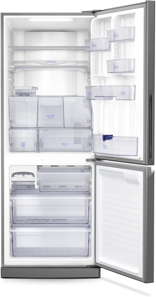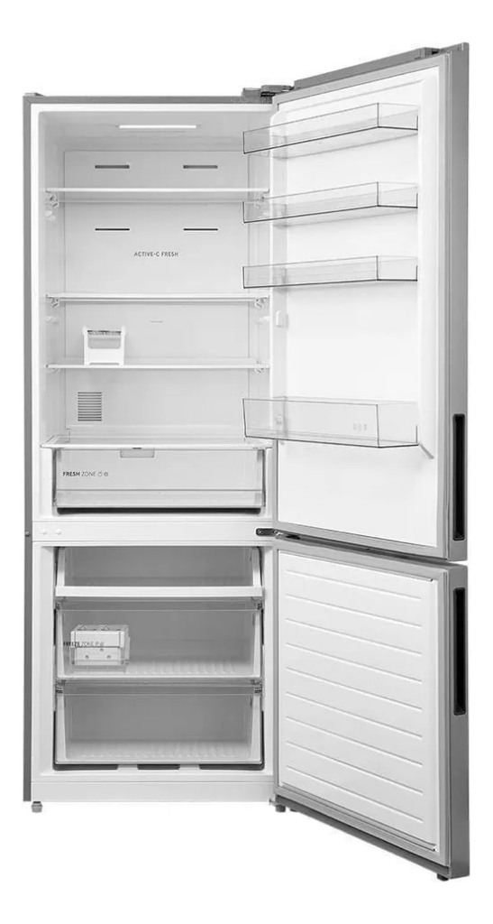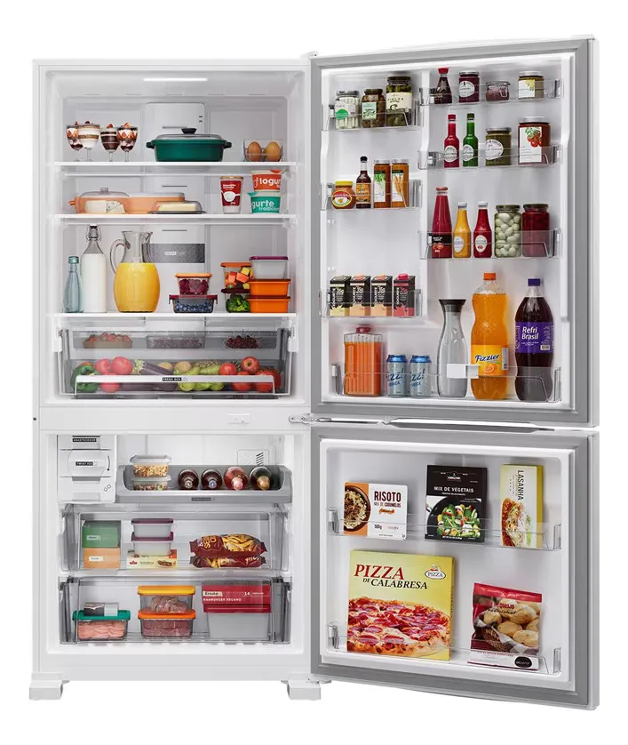 - Gavetas e prateleiras ajustáveis: Espaço organizado para frutas, legumes, bebidas e congelados.